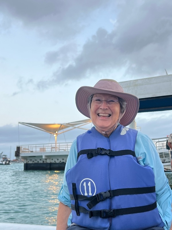 At the end of dinner the crew did a great job of making Mom feel special - a wonderful cake beautifully decorated, a birthday hat and sash, singing and music.  It was really fun.