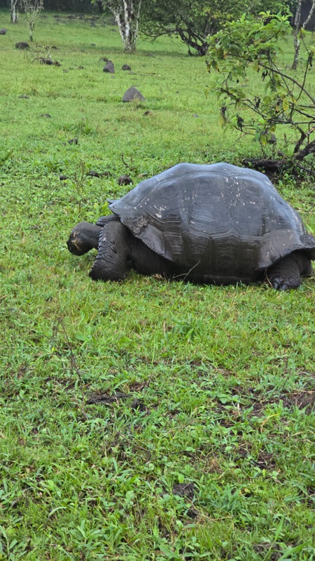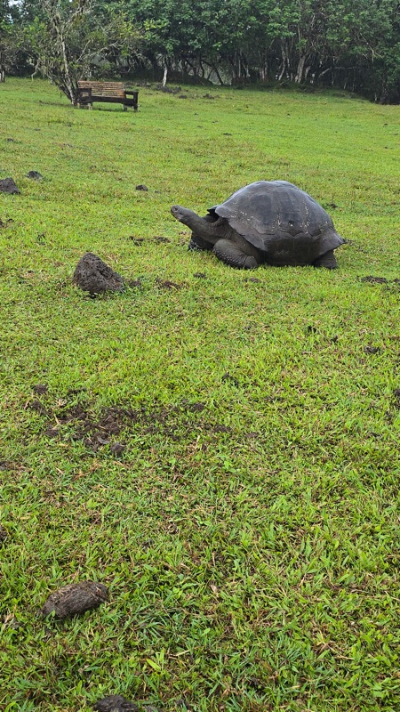 We turned off the main road, and within a few minutes the cows in the fields turned into Giant Tortoises.  They were Huge!  We arrived at Rancho Pacifico, which was our restaurant, surrounded by fields of grass with 10-15 tortoises in the near and far distance. The owner used to raise cows, but now he cuts down the big trees so more grass will grow, to encourage the turtle population. Because most of the island is a national park, no one can touch or feed the turtles, or any other creatures.