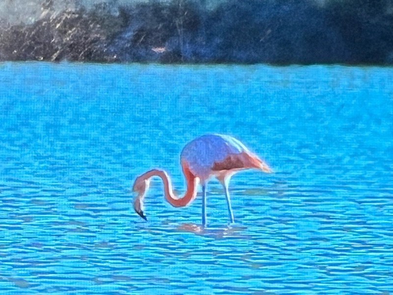 We returned to the ship and regrouped - then the whole group went to Cormorant Beach for a walk (again Roberto was testing us to see how we did in rough terrain.). We saw some gorgeous flamingos, as well as a bunch of lizards and a few other birds, and many bright red crabs.