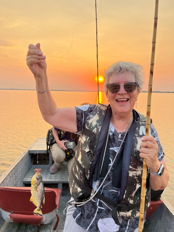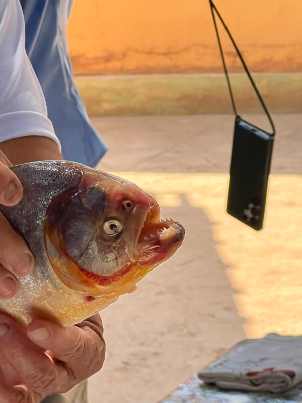 Out in the middle of a large bay we fished for piranha and almost everyone caught one, testimony to how plentiful they were and how eagerly they swarmed around at the scent of red meat.