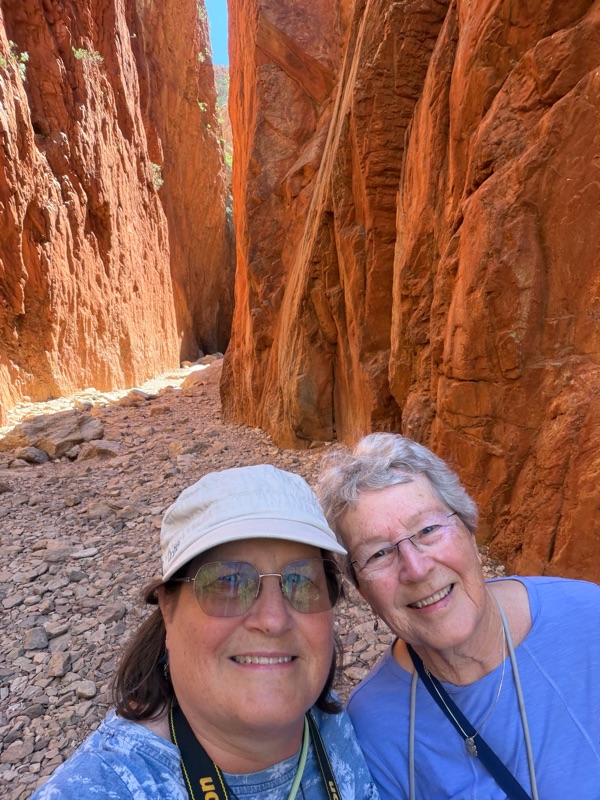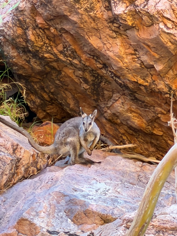 Our favorite part was the two sublimely beautiful canyons we visited this morning. Simpsons Gap was a lovely canyon that had traditionally been a place where aboriginal boys went through initiation into manhood. In this sacred place - with a beautiful stream running through it - we saw black footed rock wallabies and enjoyed spectacular views.