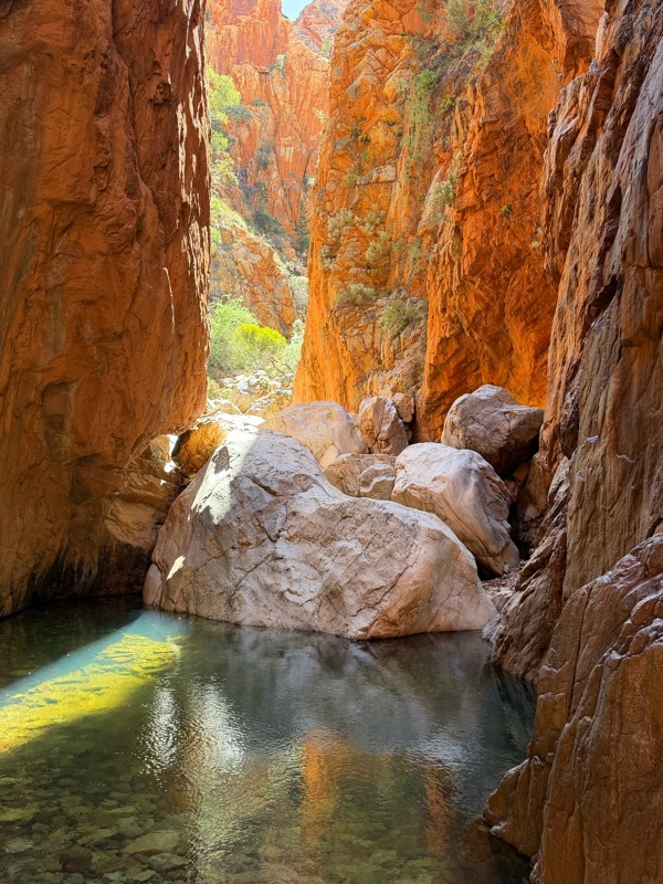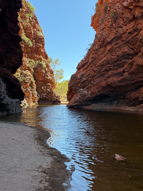We also went to Standley Chasm, which was a lovely walk up to a slot canyon. This site is also a stop on the Larapinta trail, a famous 230 km hiking trail thru the MacDonnell range. The steep and rocky walls, the massive trees, and the spectacular canyon, with a perfect little pool of water were exceptionally peaceful.