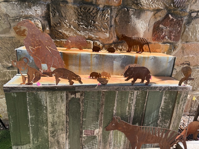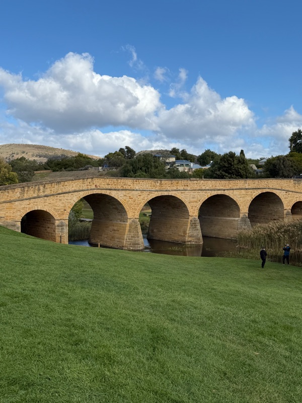 Next we headed for the rural village of Richmond. We stopped at the oldest bridge in Australia. Then we had a yummy lunch of single serving pies (lamb for Ruth, curried scallops for Cheryl) as well as very tasty pastries for dessert - locally famous vanilla custard napoleon and delightful blueberry concoction. Then we wandered around town, popping into shoppes until it was time to go, including a wood crafting business and many art and fabric handcraft shops.