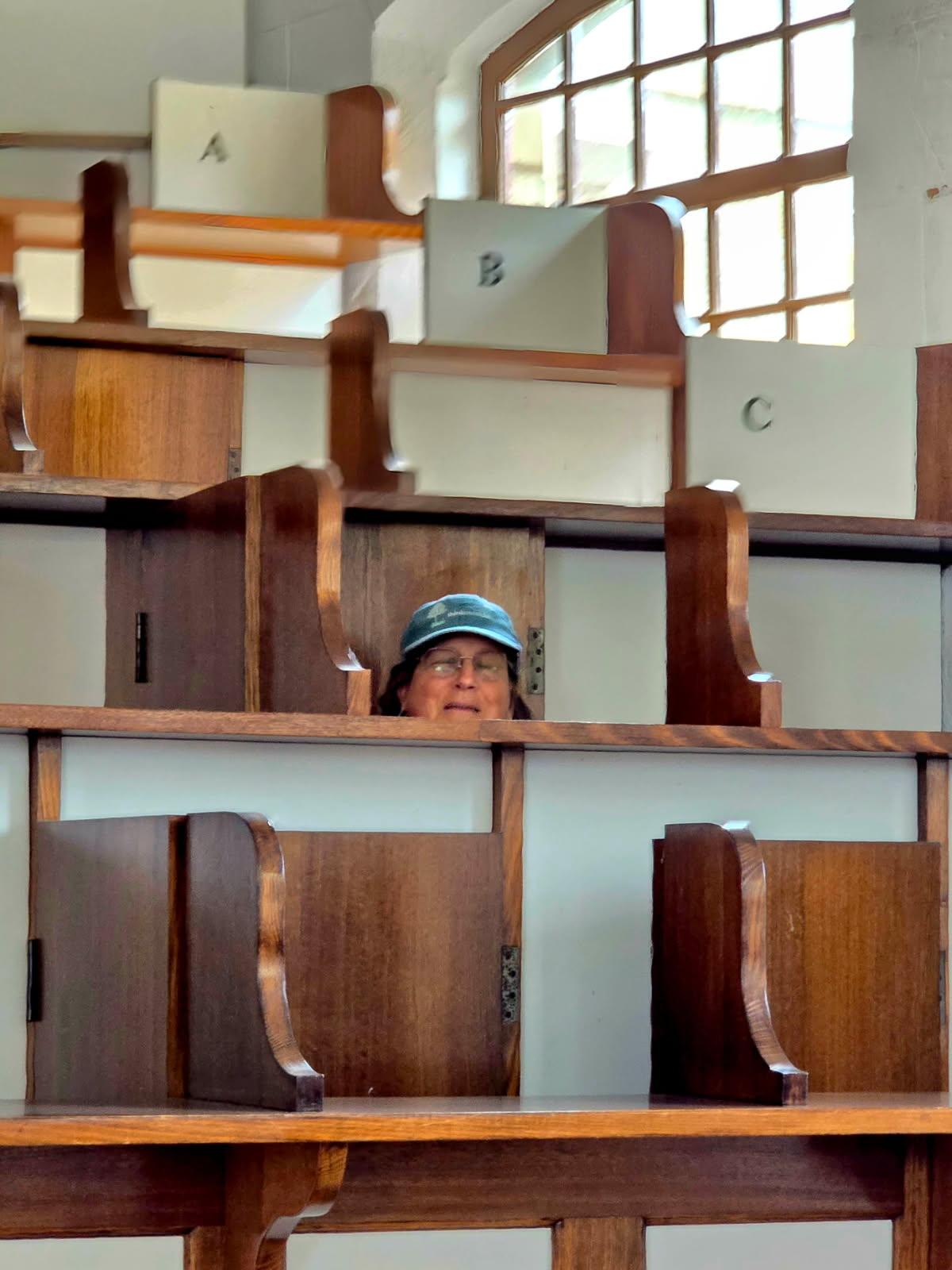 We spent a good deal of time in the isolation building, called the Separate Prison, where prisoners were in solitary confinement.  Even in the obligatory church services they were separated by doors on each side of their seats. Nor could they communicate with each other, and even the guards were silent.