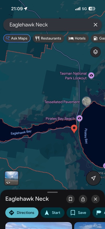 The tessalated pavement was near Eaglehawk Neck, a very narrow strip of land connecting the area around Port Arthur to the main body of Tasmania.  This neck was used as a choke point to keep convicts from escaping from the penal colony.  Starving dogs were posted close together all the way across the neck and into the water on either side to attack anyone who tried to escape. Only 12 people escaped the colony over its 47 year history.