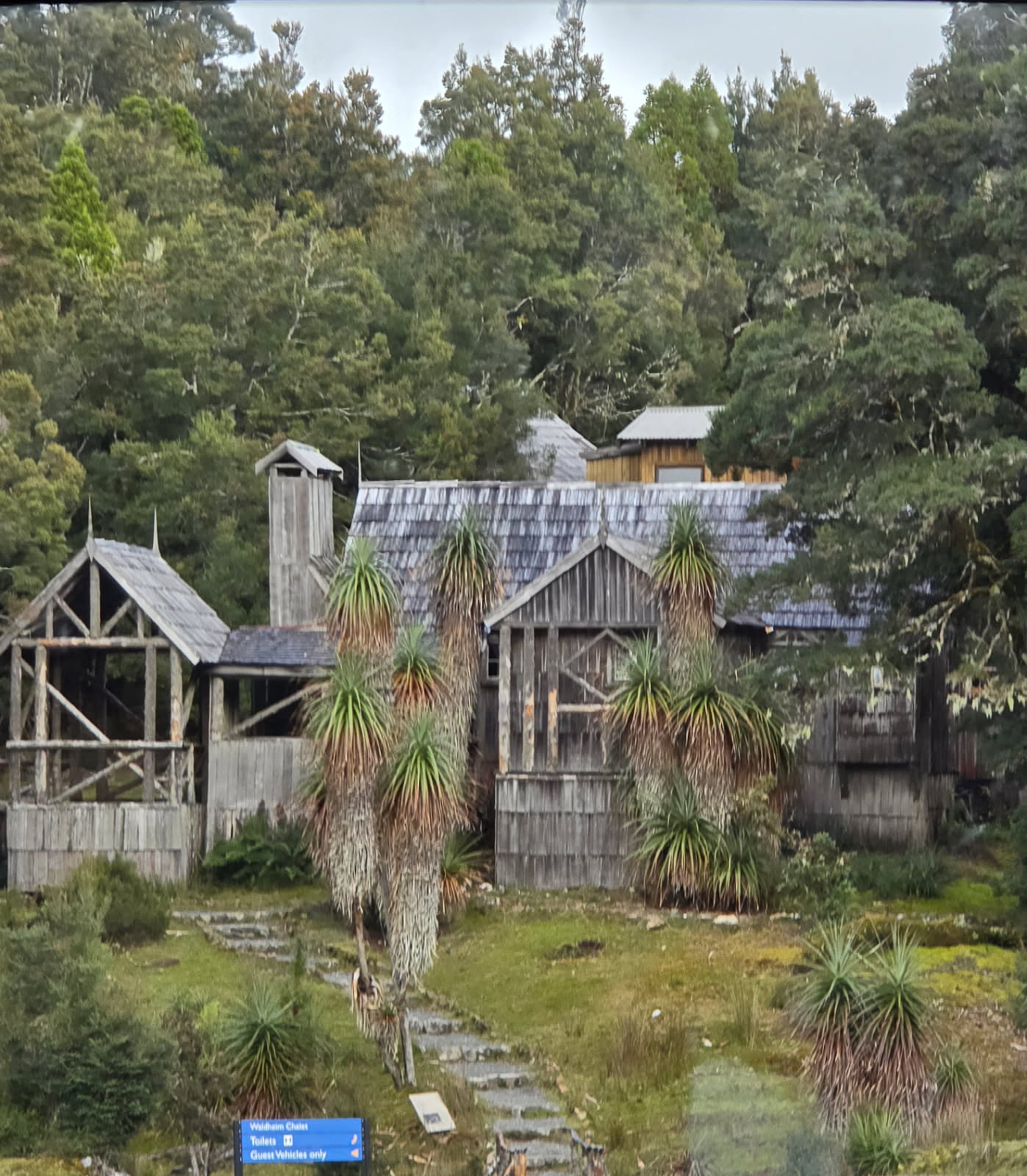 Our final stop in the park was the beautiful Waldheim chalet.  Walking up to the old house we saw several wallabies, and two pandemelons.  Inside the house itself we could see poo from the animals as well, so we felt a bit like we were chasing them from their home. The house had been built by an Austrian couple who were so awed by the beauty of the forest that they spent their lives lobbying for the area to become a national park. They built the large house so guests could come out and enjoy the fantastic views and walks in the forest, and then join them in advocating for protection of the natural environment. Ultimately, the advocacy worked because Cradle Mountain is a National park and part of the Tasmanian Wilderness UNESCO  World Heritage Site.